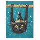 Célébrez la saison éffrayante avec un chat noir volant dans un casquette sorcier qui traverse le ciel nocturne.