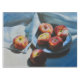A clean, minimalist still life painted in precise realism. Peaches rest on a subtly patterned plate and crisp white cloth, illuminated by directional natural light. A modern yet timeless artwork that suits Scandinavian, minimalist, and contemporary interiors.