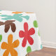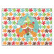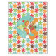 Red Fox Winter Nappe de vacances, mignonne, colorée, et tellement amusante pour la saison des vacances! Deux renards rouges portant des casquettes d'hiver, des écharpes et des oreilles, un sapin de Noël décoré et couvert de neige, des flocons de blanc sur un cercle bleu, et de jolis flocons de fleurs de brun, rouge, bleu aqua, vert et or sur un arrière - plan blanc.