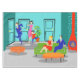 Cette nappe Retro Classic Television vous ramène à une époque plus simple. Le style années 60, minimaliste, dessin animé vous fera rechercher les crédits d'ouverture. Le design montre un salon moderne du milieu du siècle, noyé, avec des murs turquoises et turquoise et une cheminée rouge en forme de cône, avec un feu rugissant. Tous les yeux sont sur le lanky, l'homme de la maison quand il fait sa grande entrée. Le beau Mister porte un costume bleu et une cravate orange. Son adorable Mme et énergique, jeune fils se précipitent pour le saluer. La dame de la maison porte une robe rose chaude, gaine, qu'elle remplit dans tous les bons endroits. Le flip dans ses cheveux foncés est une pure perfection. Junior porte une chemise rouge et un jean bleu pour son tiret afin de voir si son père lui a apporté quelque chose. Ouah ! Ne frappe pas le plante en pots, Junior ! Au niveau inférieur, on aperçoit un canapé vert et une table basse orange. Attends ! On dirait qu'on a des invités ! Assis sur le canapé, un homme aux cheveux foncés en costume bleu et cravate rouge, à côté d'une femme aux formes blondes en robe rouge avec un arc rouge dans les cheveux. Hé ! C'est les collègues de papa. Comment y sont-ils arrivés en premier ? C'est l'un des mystères éternels de la télévision. On dirait que nous sommes tous prêts à passer une bonne soirée dans la banlieue de sitcom. Mais, d'abord, nous devons voir si papa va trébucher sur l'ottoman orange ou le détourner avec des pieds fantaisistes. Oh, le zaniness ! La seule chose qui manque dans cette scène est la chanson thématique. Et si vous écoutez attentivement, vous pouvez probablement l'entendre dans votre esprit.