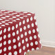 Toile de table en tissu de fête faite en rouge avec un motif à pois blanc. Un rectangle blanc, au milieu du tissu de la table, est bordé de rouge et de vert et des graphiques de saint vert, dans chaque coin. Le texte vert lit Joyeux Noël et est entièrement personnalisable pour lire ce que vous voulez. Idéal pour vos fêtes de fin d'année, serviettes en papier et assiettes en papier assorties disponibles.