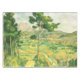 Victoire et le Viaduc de la vallée de l'Arc River. Paul Cezanne. Paysage dans les tons verts. au premier plan il y a un grand pin. Au milieu, un pont ferroviaire traverse un vaste champ. Montagnes dans l'arrière - plan. Reproduction d'oeuvres d'art célèbres dans le domaine public.