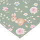Whimsical Bunny Teapot Spring Floral Pattern Tablecloth. Whimsical design featuring an adorable bunny nestled inside a delicate pink teapot, surrounded by watercolor flowers and lush green leaves. The sage green background enhances the gentle beauty of this pattern. Ideal for Easter decor.