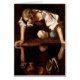 Narcisse - peinture baroque italienne par Caravaggio. Narcisse ou Narkissos (Grec : Νάρκισσος), probablement dérivé de la signification "sommeil de ναρκη (narke), engourdissement," en mythologie grecque était un chasseur du territoire de Thespiae dans le Boeotia qui était renommé pour sa beauté. Il était exceptionnellement fier, du fait il a dédaigné ceux qui l'ont aimé. Car divin punition il est tombé amoureux de sa propre réflexion dans une piscine, la réalisation de elle était simplement une image, et il a gaspillé loin à la mort, ne pouvant pas laisser la beauté de sa propre réflexion. Michaël Angelo Merisi DA Caravaggio (1571 - 1610) était un en activité italien d'artiste à Rome, à Naples, à Malte, et en Sicile entre 1593 et 1610. Ses peintures, qui combinent une observation réaliste de l'état humain, physique et émotif, avec une utilisation dramatique de l'éclairage, ont eu une influence formatrice sur l'école baroque de la peinture.