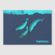 Trois narvals, Monodon monoceros, nagent sous la glace arctique. Lecture de texte personnalisable, "Narwhal" apparaît également. Le narval est apparenté à la baleine béluga et vit dans l'Arctique toute l'année. Ils se trouvent principalement dans les eaux du Groenland et du Canada, rarement au sud du 65e parallèle de latitude nord. Les mâles pèsent jusqu'à 1 600 kg (3 500 lb), les femelles pèsent environ 1 000 kg (2 200 lb). Le plus grand narval jamais trouvé pesait 3 500 livres. Ils ont la forme d'un béluga et ont environ quatre pouces de gras isolant. Les narvals se rassemblent normalement en groupes d'environ cinq à dix individus. L'été, plusieurs groupes se réunissent pour former de plus grands regroupements. Narwhal est dérivé du mot nár de l’Ancien Norse, qui signifie "cadavre", faisant référence à la pigmentation grisâtre et martelée de l’animal, comme celle d’un marin noyé. Les narvals sont les plus sombres quand les jeunes deviennent plus blancs avec l'âge. La caractéristique la plus visible du narval mâle est sa simple défensive tordue de 2-3 mètres (7-10 pi). Il s'agit d'une dent d'inciseur qui se projette du côté gauche de la mâchoire supérieure et forme une hélice gauchiste. Le nom scientifique du narval, Monodon monoceros, est dérivé de "one-tooth one-horn". La défensive peut mesurer jusqu'à 3 mètres (9,8 pi) de long, comparativement à une longueur corporelle de 4-5 mètres (13-16 pi), et peser jusqu'à 10 kilogrammes (22 lb). Environ un mâle sur 500 a deux défenses, ce qui se produit lorsque l'inciseur droit, normalement petit, pousse également. Un narval féminin peut aussi produire une défensive, mais cela se produit rarement, et il y a un seul coque enregistré d'une femelle avec deux défenses. Ce comportement est censé maintenir les hiérarchies de domination sociale. Parfois, les narvals mâles se frottent les défenses ensemble dans une activité appelée "étouffement". La raison de ce comportement est inconnue ; il peut être de "gratter une démangeaison" (la base de la défensive est généralement infestée de poux) ; ou traversée de défenses peut être un accueil amical. La théorie la plus largement acceptée pour le rôle de la défensive est similaire à la crinière d'un lion ou aux plumes de queue d'un paon. Il peut aider à déterminer le rang social, à maintenir les hiérarchies de domination ou à aider les jeunes hommes à développer les compétences nécessaires à la performance dans des rôles adultes. Les narvals ont rarement été observés en se servant de leur défensive pour combattre ou adopter d'autres comportements agressifs ou pour briser la glace de mer dans leur habitat arctique. Narwhal se déroule généralement à un rythme tranquille, respirant lentement et roulant, mais sont remarquablement rapides lorsqu'ils se sentent menacés. Parfois, ils voyagent en petits groupes familiaux et communiquent au moyen d'une grande variété de cris, de trills, de sifflets et de clics. Les narvals ont une alimentation relativement restreinte et spécialisée. Leur proie est principalement composée de flétan du Groenland, de morue polaire et arctique, de crevettes et de calmar Gonatus. Les autres objets trouvés dans les estomacs comprennent le loup, le capelan, les oeufs de patinage et parfois les roches, ingérés accidentellement lorsque les baleines se nourrissent près du fond. On ignore comment le narval attrape sa proie. Certains scientifiques pensent que le narval assombrit leur proie de son comme les dauphins. Le Narwhal présente des migrations saisonnières avec une haute fidélité de retour dans les aires estivales libres de glace préférées, généralement dans les eaux peu profondes. En hiver, ils se retrouvent principalement dans les eaux hauturières, plus profondes, sous une épaisse banquise, surfacés par des fissures étroites dans la glace de mer, ou des chenaux. Les Narwhal du Canada et de l'Ouest du Groenland hivernent régulièrement dans la banquise du détroit de Davis et de la baie de Baffin, le long de la pente continentale, avec moins de 5 % d'eau libre et de fortes densités de flétan du Groenland. L'alimentation en hiver représente une part beaucoup plus importante de l'apport énergétique des narvals qu'en été et, en tant que prédateurs marins, ils sont uniques dans leur exploitation réussie des écosystèmes arctiques des eaux profondes. La plus remarquable de leurs adaptations est la capacité à effectuer des plongées profondes. Lorsqu'ils se trouvent sur leur site d'hivernage, les narvals font quelques-unes des plongées les plus profondes jamais enregistrées pour un mammifère marin, plongeant à au moins 800 mètres (2 400 pieds) sur 15 fois par jour, avec de nombreuses plongées atteignant 1 500 mètres (4 500 pieds). Les plongées à ces profondeurs dernier environ 25 minutes, y compris le temps passé au fond et le transit vers le bas et le retour de la surface. Dans les terrains d'été peu profonds, les narvals plongent à des profondeurs entre 30 et 300 mètres (90-900 pieds). Les seuls prédateurs des narvals, outre les humains, sont les ours polaires et les orques. Les Inuits sont autorisés à chasser légalement cette espèce de baleine pour leur subsistance. Le climat du nord fournit peu de nutrition sous forme de vitamines qui ne peuvent être obtenues que par la consommation de phoques, de baleines et de morses. Presque toutes les parties du narval, de la viande, de la peau, de la graisse et des organes sont consommées. Mattak, le mot pour peau brute et le blubber, est considéré comme un mets délicat, et les os sont utilisés pour les outils et l'art. Dans certains endroits du Groenland comme le Qaanaaq, les méthodes traditionnelles de chasse sont utilisées, et les baleines sont harponnées de kayaks faits main. Dans d'autres régions du Groenland et du nord du Canada, on utilise des bateaux à grande vitesse et des fusils 