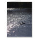 Deux oies nageant vers la lumière du soleil miroitant outre du lac