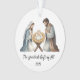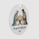 This elegant Nativity Christmas ornament beautifully captures the Holy Family. Mary, Joseph, and baby Jesus in a peaceful manger scene. Designed with soft watercolor tones and gentle gold accents, it brings a sacred warmth to your holiday décor.
