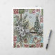 The paper is dramatically accented with highly textured, snow-dusted white poinsettias and frosty foliage. Key festive details include a miniature Christmas tree, a beautifully rendered Nativity scene with the Holy Family in the stable, and a charming heart-shaped "Merry Christmas" tag. Subtle sheet music elements drift across the top.