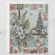 This detailed design features a richly layered, torn-paper patchwork border in vintage reds, greens, and creams, including checks, florals, and damask patterns. The soft, speckled center provides a beautiful canvas for the key elements.