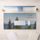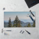 Salon de travail personnalisé bleu et vert Nature Mountain Forest Desk Mat avec arbres de la forêt verte et ciel bleu. Parfait pour les amoureux de la montagne et de la forêt, fera un beau tapis de bureau personnalisé pour votre bureau à domicile.
