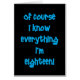 La 18ème suis conception humoristique d'anniversaire qui qu'énonce les évidents "naturellement je savent tout je 18" ou au moins ce que tout les 18 ans pensent. Fait un grand 18ème cadeau d'anniversaire.
