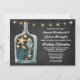 Nautical Chalkboard Starfish Wedding Invitations - présente un arrière - plan de tableau noir imprimé avec une bouteille nautique remplie sera hippocampe, étoiles de mer, coquillages et corail. La conception comporte également des lampes à cordes en haut.