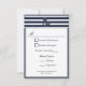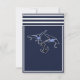Nautique avale bleu marine RSVP invitations 2 choix de menu - la conception avant dispose d'un ruban d'ancrage avec un contour qui court le long des bords de la carte. Les motifs et le texte sont bleu marine sur un arrière - plan blanc. La conception du dos continue le ruban autour de la carte et les couleurs du contour et de l'arrière - plan ont maintenant été changées, où le contour est blanc et l'arrière - plan bleu marine. Au milieu se trouve deux hirondelles en vol, travaillant ensemble pour porter une ancre sur une corde. Le papier par défaut est défini sur stock d'invitation de base, mais peut être modifié en cliquant sur 'choisir votre style' puis en utilisant la zone de liste déroulante Papier choisissez une des options. Chaque invitation est accompagnée d'une enveloppe blanche. Pour modifier la police, la taille de la police ou la couleur de la police, cliquez sur le bouton personnaliser sous l'invitation RSVP Nautique. Notez que vous devrez peut-être le customiser si certains termes sont trop longs et qu'ils correspondent mieux à la conception. Si vous êtes satisfait du paramétrage de la police, vous pouvez utiliser la fonction de personnalisation pour modifier les informations de démonstration à vos données personnelles. Cliquer sur les petites images de l'avant/de l'arrière de la carte avec changement sur ce côté pour qu'il puisse être modifié. Une fois terminé, vérifiez que les informations que vous avez appliquées sont correctes et que vous n'avez pas d'erreurs d'orthographe des deux côtés de la carte. D'autres produits qui vont avec celui-ci.
