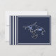 Nautique bleu marine avale RSVP invitations 3 choix de menu - le design avant dispose d'un ruban d'ancrage avec un contour qui court le long des bords de la carte. Les motifs et le texte sont bleu marine sur un arrière - plan blanc. La conception du dos continue le ruban autour de la carte et les couleurs du contour et de l'arrière - plan ont maintenant été changées, où le contour est blanc et l'arrière - plan bleu marine. Au milieu se trouve deux hirondelles en vol, travaillant ensemble pour porter une ancre sur une corde. Le papier par défaut est défini sur stock d'invitation de base, mais peut être modifié en cliquant sur 'choisir votre style' puis en utilisant la zone de liste déroulante Papier choisissez une des options. Chaque invitation est accompagnée d'une enveloppe blanche. Pour modifier la police, la taille de la police ou la couleur de la police, cliquez sur le bouton personnaliser sous l'invitation RSVP Nautique. Notez que vous devrez peut-être le customiser si certains termes sont trop longs et qu'ils correspondent mieux à la conception. Si vous êtes satisfait du paramétrage de la police, vous pouvez utiliser la fonction de personnalisation pour modifier les informations de démonstration à vos données personnelles. Cliquer sur les petites images de l'avant/de l'arrière de la carte avec changement sur ce côté pour qu'il puisse être modifié. Une fois terminé, vérifiez que les informations que vous avez appliquées sont correctes et que vous n'avez pas d'erreurs d'orthographe des deux côtés de la carte. D'autres produits qui vont avec celui-ci.