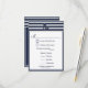 Nautique bleu marine avale RSVP invitations 3 choix de menu - le design avant dispose d'un ruban d'ancrage avec un contour qui court le long des bords de la carte. Les motifs et le texte sont bleu marine sur un arrière - plan blanc. La conception du dos continue le ruban autour de la carte et les couleurs du contour et de l'arrière - plan ont maintenant été changées, où le contour est blanc et l'arrière - plan bleu marine. Au milieu se trouve deux hirondelles en vol, travaillant ensemble pour porter une ancre sur une corde. Le papier par défaut est défini sur stock d'invitation de base, mais peut être modifié en cliquant sur 'choisir votre style' puis en utilisant la zone de liste déroulante Papier choisissez une des options. Chaque invitation est accompagnée d'une enveloppe blanche. Pour modifier la police, la taille de la police ou la couleur de la police, cliquez sur le bouton personnaliser sous l'invitation RSVP Nautique. Notez que vous devrez peut-être le customiser si certains termes sont trop longs et qu'ils correspondent mieux à la conception. Si vous êtes satisfait du paramétrage de la police, vous pouvez utiliser la fonction de personnalisation pour modifier les informations de démonstration à vos données personnelles. Cliquer sur les petites images de l'avant/de l'arrière de la carte avec changement sur ce côté pour qu'il puisse être modifié. Une fois terminé, vérifiez que les informations que vous avez appliquées sont correctes et que vous n'avez pas d'erreurs d'orthographe des deux côtés de la carte. D'autres produits qui vont avec celui-ci.