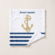 Cette image présente un nom de bateau et ancre sur un arrière - plan rayé bleu et blanc de la marine.