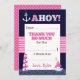 Cette adorable note de remerciement dans le blanc correspond à notre populaire invitation de fête d'anniversaire Nautique de Sail Away Girl. Cette note de remerciement peut être personnalisée avec le nom de votre enfant en bas (ou il peut être laissé en blanc), et les blancs peuvent être remplis à la main. C'est une jolie façon pour un jeune enfant de dire Merci aux invités de la fête !