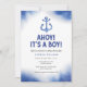 Invitation vos invités à votre baby shower avec cette belle Invitation de Baby shower d'aquarelle nautique avec dos rayé. Idéal pour une mère d'attendre un petit garçon ! © Mini Moi Prints
