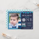 Éblouissez vos invités avec cet invitation de fête nautique cool avec un beau phare et des éléments nautiques mignons avec typographie moderne contre un arrière - plan bleu foncé. Ajoutez simplement les détails de votre événement sur ce modèle facile à utiliser et ornez cette carte avec la photo préférée de votre enfant pour en faire une invitation unique. Retournez la carte pour révéler un élégant motif d'ancre bleu au dos de la carte.
