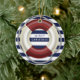 Ornement de Noël nautique personnalisé avec sauteur de sauvetage, blanc et bleu arrière - plan et texte personnalisable Joyeux Noël