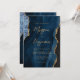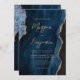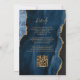 Cette élégante invitation de mariage présente une image arrière - plan d'agate bleu marine d'aquarelle parée de parties scintillant en faux or. Le texte personnalisable combine écriture moderne chic dorée, cuivre et polices italiques. L'envers offre de l'espace pour les détails mariages sur un arrière - plan agate bleu correspondant, ainsi qu'un code QR que les invités peuvent scanner pour visiter votre site Web et RSVP, ce qui permet d'économiser le coût d'impression et d'envoi de cartes RSVP séparées.