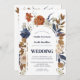 Navy Blue Rust Watercolor Boho Wedding Invitation