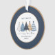 Ornement de Noël avec des arbres de Noël bleus simples et modernes sur un arrière - plan blanc et bleu marine. Personnalisez facilement le texte ou laissez-le vide - Kate Eden Art