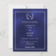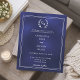A navy blue, uneven colored background decorated with a hand drawn wreath. White colored frames and text. Personalize and your monogram initials, names and details.