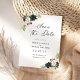 Navy & Blush Pink Floral Enregistrer La Carte Date. Cette invitation à la douche nuptiale élégante et élégante présente de magnifiques aquarelles peintes à la main Navy & Blush Pink Floral. Trouvez les articles correspondants dans la collection Florale Marine & Blush Pink.