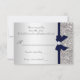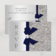 Cartes de réponse plates personnalisées pour RSVP formel / invitations pour tout événement - mariages, baby showers, fête d'anniversaire, sweet 16, célébrations de Quinceanera, fiançailles, douche de mariée, etc. Cartes de réponse doubles faces élégantes et personnalisées de couleur argent et bleu marine foncé avec un motif brillant imprimé pailleté, strass, sequins, jolis rubans et nœuds vectoriels brillants imprimés et image élégante et stylisée de diamants, bijoux bling et texte gris foncé. Ces RSVP argent et marine sont classe, glamour, et fashion, et sont décorées des deux côtés. Cartes doubles faces belles, chic, tendance et modernes avec éclat et glamour. Veuillez noter : Toutes les invitations sur Zazzle ont des images imprimées plates. J'ai des produits assortis dans ma boutique. Le texte, la police et les couleurs de la police sont tous personnalisables pour répondre à vos besoins. Si vous avez besoin d'aide pour personnaliser votre produit, veuillez me contacter via ma boutique. Je serai ra