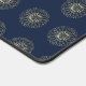 Elegant gold zinnia motifs on a navy blue background, blending traditional florals and contemporary style with simplicity.