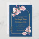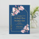 Elegant Navy Blue Magnolia Wedding Invitation with Gold Arch & Photo Back.