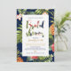 Cette invitation unique de douche de mariée tropicale présente un beau motif floral tropical avec une typographie élégante.