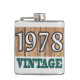 Cadeau pour une personne née en 1978. 1978 flacon de hanche. Bravo aux souvenirs de 1978 avec notre flacon de hanche spécialement conçu pour ceux qui sont nés dans cette année remarquable ! Ce flacon affiche un design élégant avec le message imprimé "1978 vintage", rendant hommage à l'époque des évènements disco et culturels. Portez vos esprits préférés avec fierté et laissez cette fiole devenir un gardien chéri. Disponible dès maintenant à partir de cette boutique en ligne Zazzle. Lève un toast à ton année de naissance !