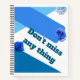 Un carnet design avec une couverture blanche aux accents bleus géométriques et des illustrations de roses bleus. Le capot avant affiche clairement l'expression "Ne manquez rien" dans une police bleue foncée et audacieuse. L'image montre à la fois les couvertures avant et arrière du carnet en spirale.