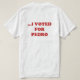 Pas moins de deux (ou trois, ou quatre) maux pour vous. Non, vous avez mis votre vote derrière l'homme qui peut vraiment obtenir des choses faites - PEDRO ! Ainsi vous ne prendrez pas le blâme pour celui qui se produise, droit ? Montrez au monde votre prévoyance avec ce T-shirt élégant dans le style de M. Dynamite lui-même.