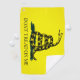 Serviette de golf avec l'image du drapeau vintage, Ne me touchez pas. En couleurs jaune et noir.