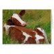 Un mignon jeune veau d'airain se lave paresseusement sur un pâturage vert pour mâcher son cou, et retourne sa tête obscure pour voir qui ou ce qui l'a dérangé. Il s'agissait d'une photo couleur d'un holstein de couleur brune et blanche ou d'une vache laitière fresienne, numériquement rehaussée de détails de brosse pour ressembler à un tableau.