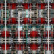 Rouleau coloré de tambours de piège empilés et carrelés.