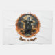 Un design féroce et enflammé, parfait pour une serviette de cuisine ou une serviette de thé, avec une sorcière gothique dans un casquette pointu, entourée de lumières jack-o'-lanternes. L'oeuvre est entourée d'un spectaculaire anneau de feu, sous lequel se trouve le texte en gras "Né pour brûler". Cette puissante illustration saisonnière est idéale pour décorer votre cuisine pendant Halloween
