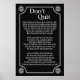 Ne quittez pas Poem — Poster d'Art — Quand les choses vont mal, comme elles le feront parfois, Quand la route que vous traversez semble tout en haut, Quand les fonds sont faibles et les dettes élevées, Et vous voulez sourire, mais vous devez soupirer, Quand les soins vous poussent un peu vers le bas, Reposez, si vous le devez, mais ne quittez pas. La vie est bizarre avec sa torsion et ses tours, Comme chacun d'entre nous l'apprend parfois, Et beaucoup d'un échec se produit, Quand il aurait pu gagner s'il l'avait coincé dehors; N'abandonnez pas si le rythme semble lent, Vous pouvez réussir avec un autre coup. Le succès, c'est l'échec qui s'est révélé ; La teinte argentée des nuages de doute ; Et vous ne pouvez jamais dire à quel point vous êtes proche, Il peut être proche quand il semble loin ; Alors, restez au combat quand vous êtes le plus durement frappé - C'est quand les choses semblent pires que vous ne devez pas démissionner.