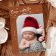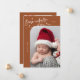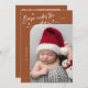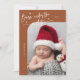 Elégante et moderne carte de thème de Noël avec un texte manuscrit qui dit "Né sous le faux-pied". C'est une carte faire-part de naissance pour les saisons de vacances ! Ajoutez vos photos, vos statistiques de naissance et un message ! L'arrière - plan est en terre cuite.
