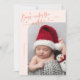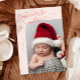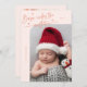 Elégante et moderne carte de thème de Noël avec un texte manuscrit qui dit "Né sous le faux-pied". C'est une carte faire-part de naissance pour les saisons de vacances ! Ajoutez vos photos, vos statistiques de naissance et un message ! L'arrière - plan est la pêche.