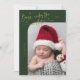 Elégante et moderne carte de thème de Noël avec un texte manuscrit qui dit "Né sous le faux-pied". C'est une carte faire-part de naissance pour les saisons de vacances ! Ajoutez vos photos, vos statistiques de naissance et un message ! L'arrière - plan est vert.