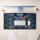 This extra-large desk mat features a vibrant cosmic spiral of neon blues, purples, teals and golds swirling at the center, surrounded by a sleek, futuristic year-at-a-glance calendar. The sci-fi HUD-style panels around the edges keep every month right in front of you, while the rich, galaxy background makes your whole setup feel like a command deck.