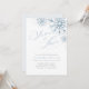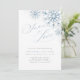 Célébrez l'amour avec notre Invitation à la douche nuptiale Snow in Love, avec d'élégantes flocons de neige couleur aquarelle en bleu poussiéreux doux. Le script de calligraphie moderne et les accents de parties scintillant argentée ajoutent une touche chic et festive, parfaite pour une douche de mariée hivernale au pays des merveilles. Cette invitation combine à merveille un thème d'hiver douillet avec des éléments de design raffinés, ce qui en fait le choix idéal pour une fête de Noël nuptiale. Des textes entièrement personnalisables vous permettent de le rendre vraiment personnel.