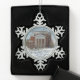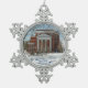 Ornement de flocon de neige d'étain comportant Carnegie Hall Lewisburg, WV couvert dans une couverture de nouvelle neige tombée.