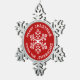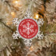 Un flocon blanc sur un arrière - plan rouge avec "Joyeux Noël" de la famille dans un cercle autour.