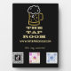 Restez connecté avec les clients du bar/brasserie en utilisant ce panneau de table qui comporte une tasse de bière néon avec du texte personnalisable et des codes qr sur les médias sociaux sur arrière - plan noir