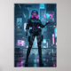 A powerful cyberpunk heroine standing in a neon-lit futuristic city, surrounded by holographic tech and glowing skyscrapers. This artwork captures strength, intelligence, and high-tech rebellion. Perfect for fans of cyberpunk, sci-fi aesthetics, and futuristic wall decor. Works great as posters, phone cases, and apparel designs.